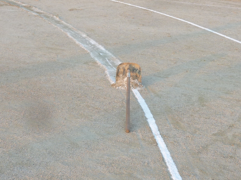 テントは準備万端ですが、テントの下のグラウンドは水が浮いてます