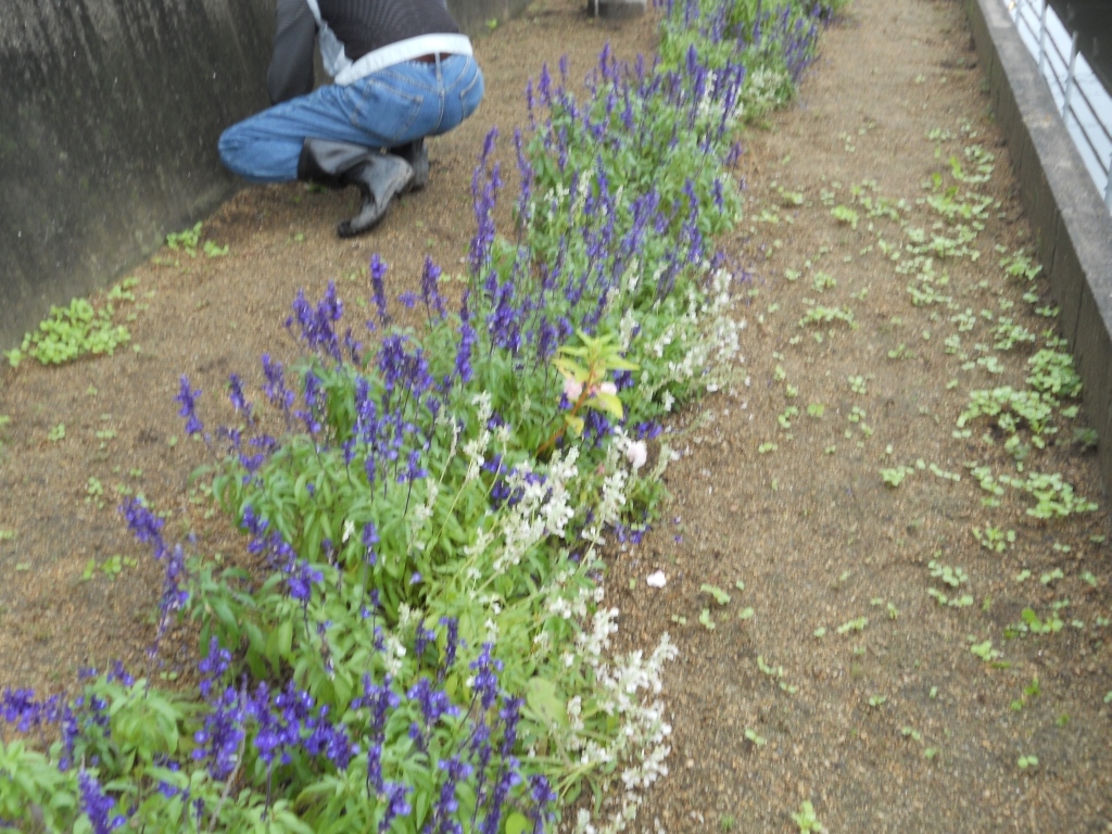 花壇近くにいると、カッパを着た人達が花壇方面に…