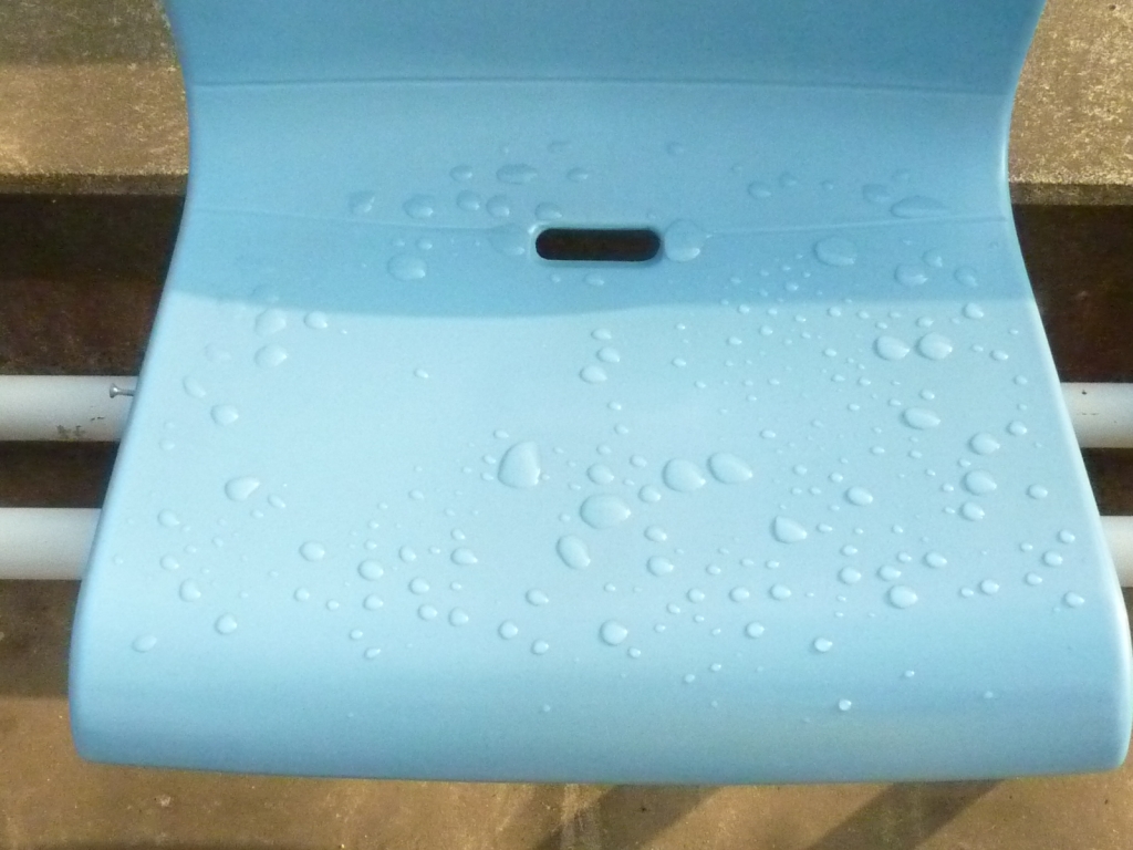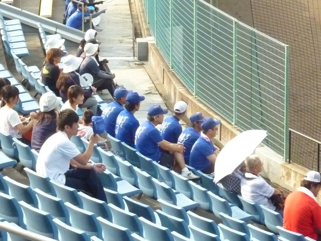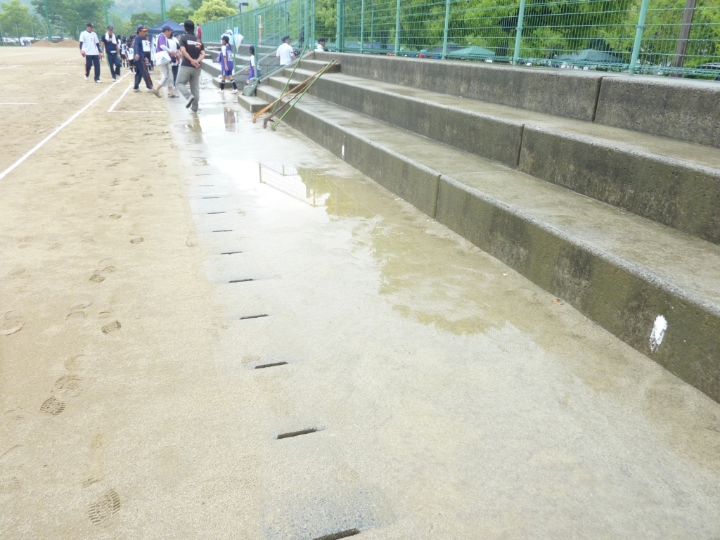 スタンドの席は、昨日の雨でまだ濡れていましたが