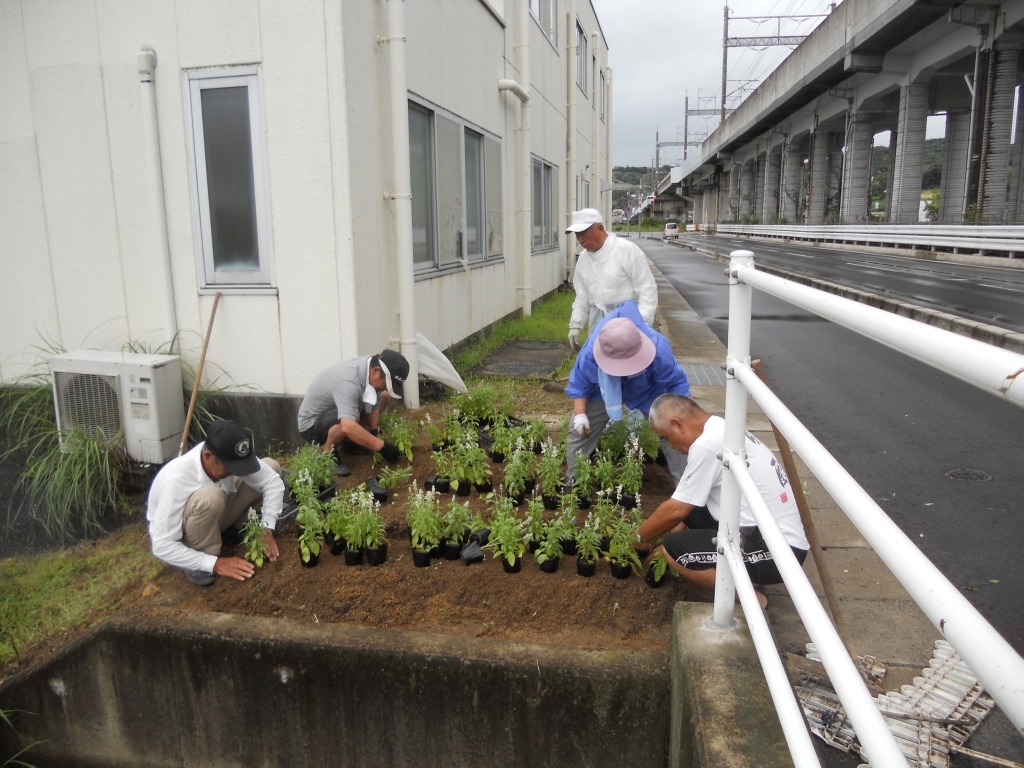 コミュニティーハウス北の花壇に植栽をされてる方々がいらっしゃいました