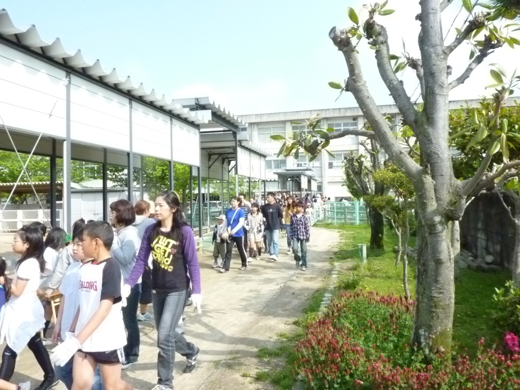 奉仕作業に参加頂いた小学生達やお父さん、お母さん方