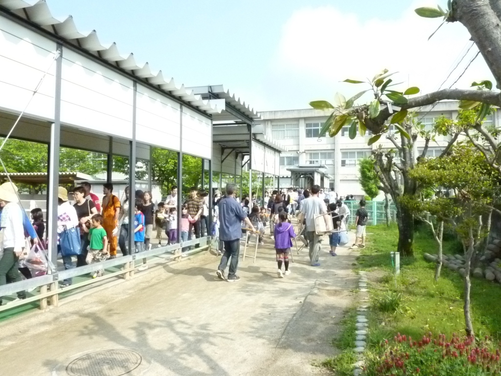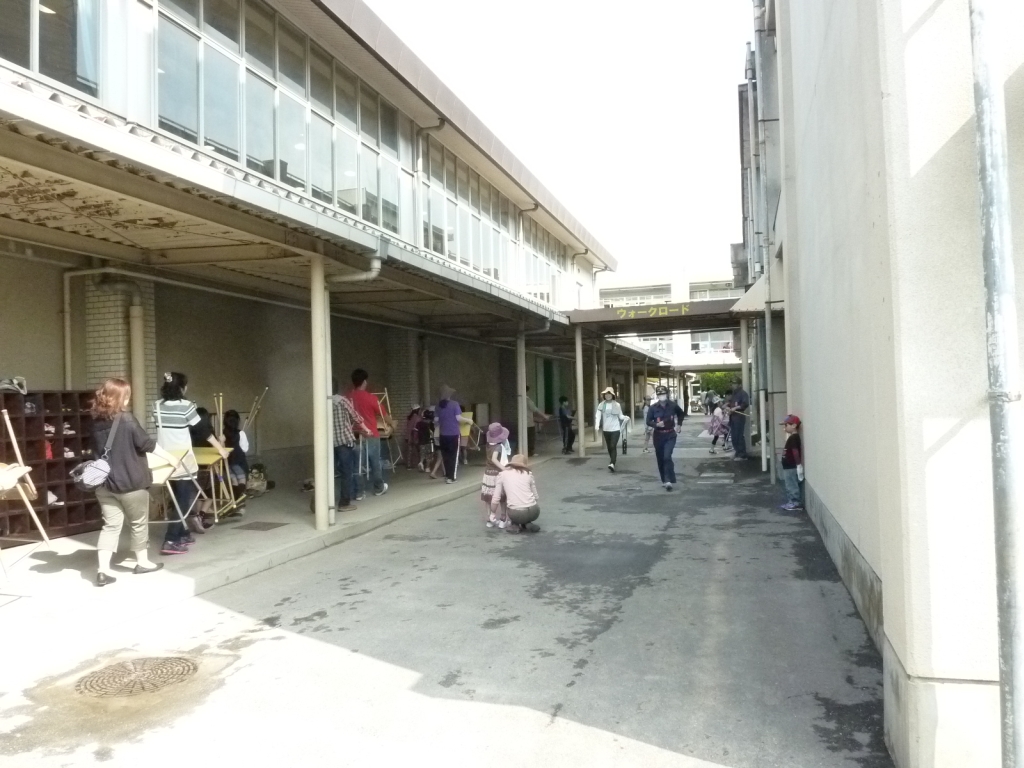 遠回りになりますが、プール横の通路から仮校舎に移動です