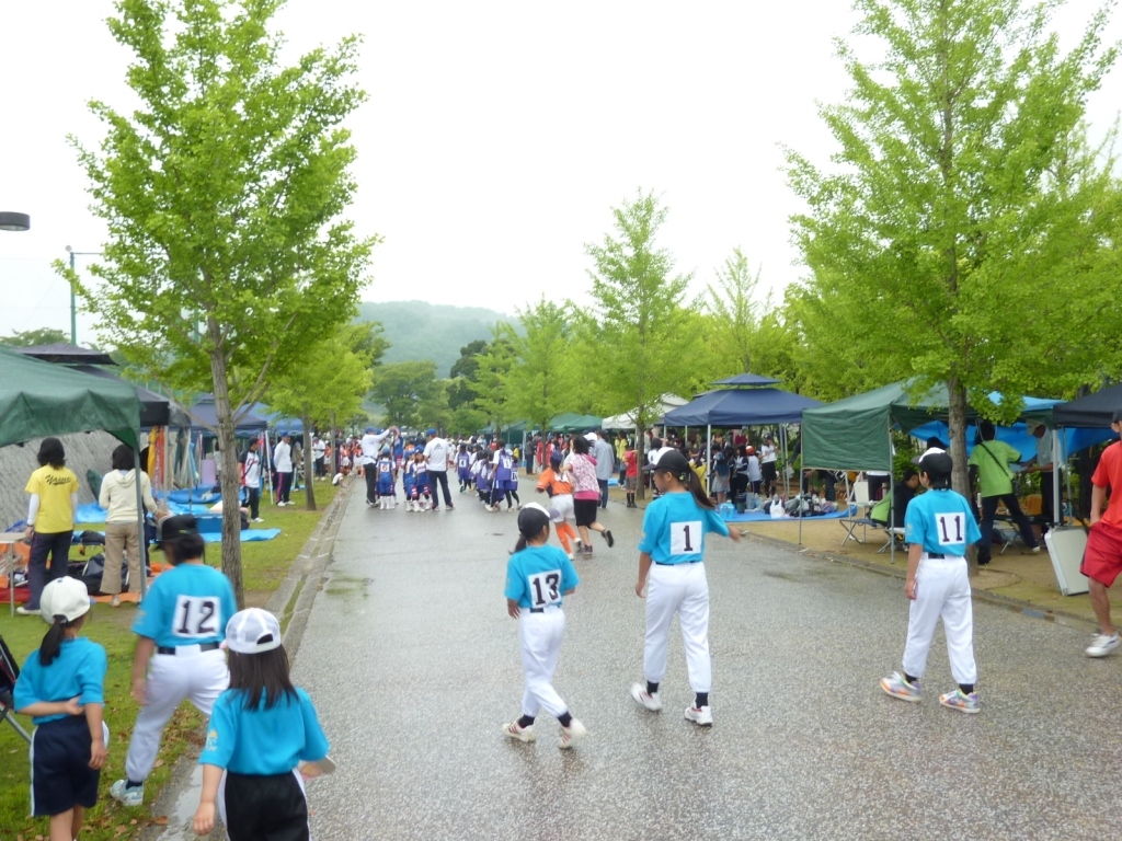 傘はさしてませんが…、危険防止の為、グラウンド内での傘は禁止されました