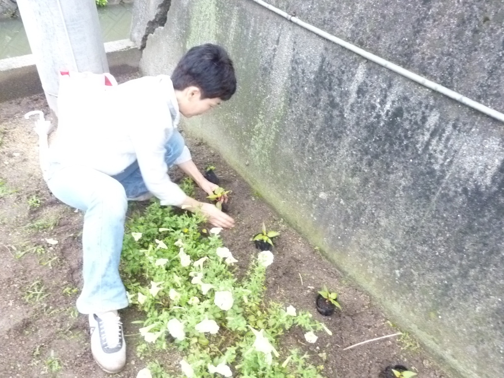 花と花の間に生えている草を抜いていきます