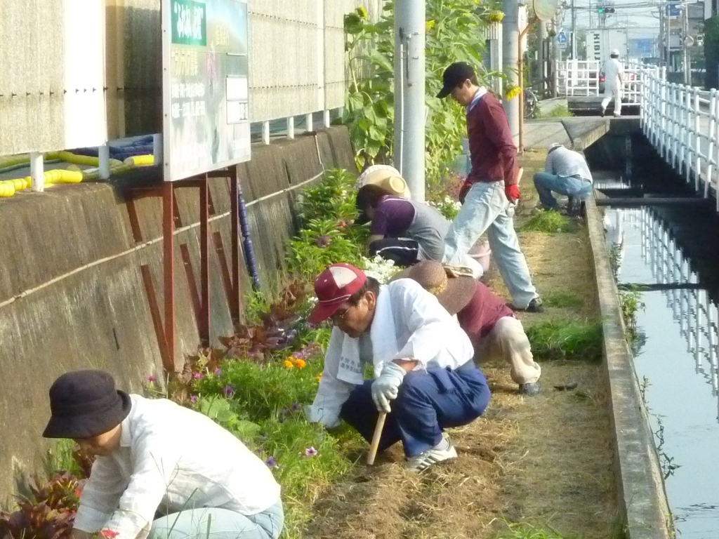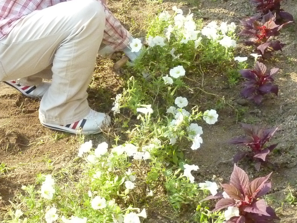 さぁ、今日は『ふれあい花壇』の草取り