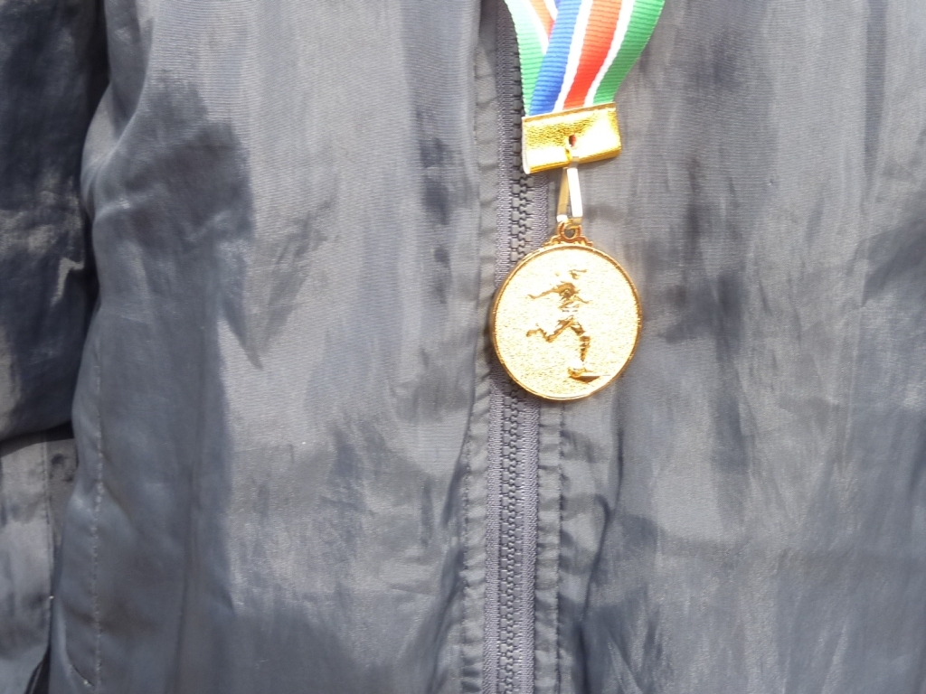 表彰の後、6年生には記念のメダルが…