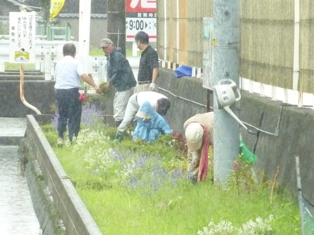 花壇近くにいると、カッパを着た人達が花壇方面に…