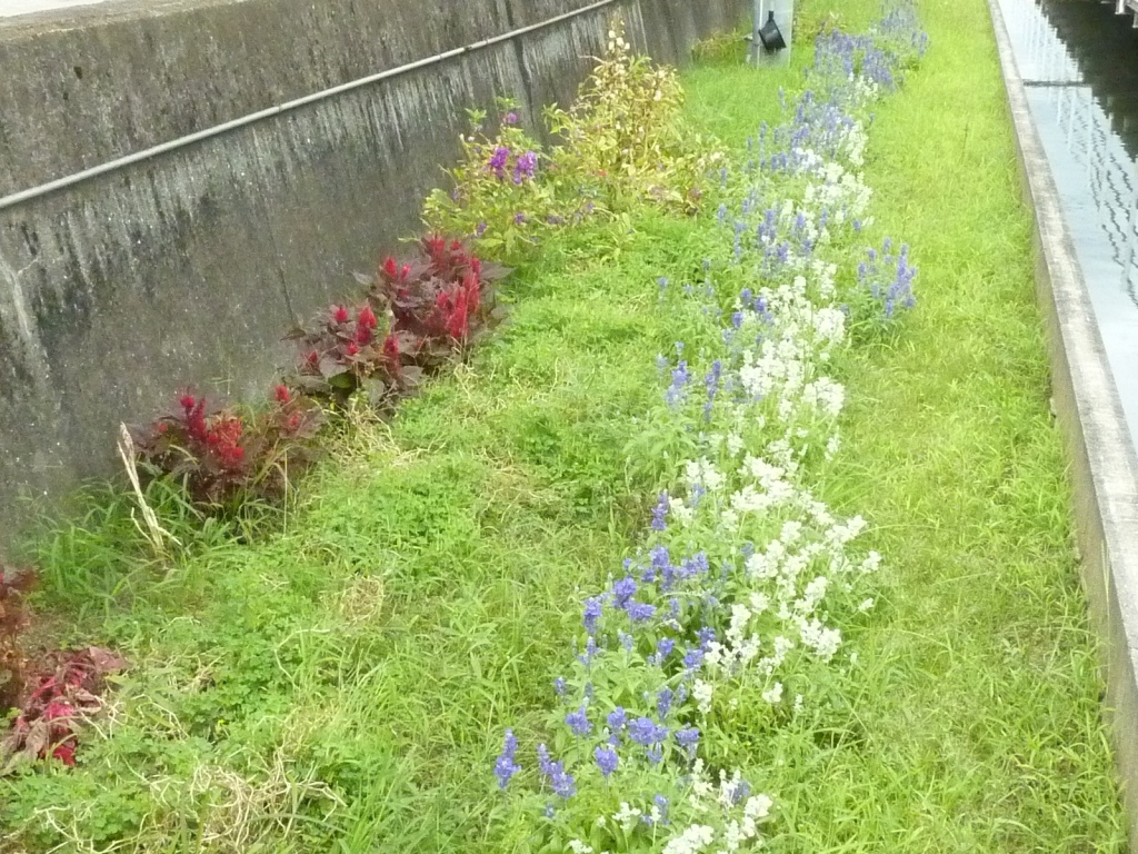 花壇近くにいると、カッパを着た人達が花壇方面に…