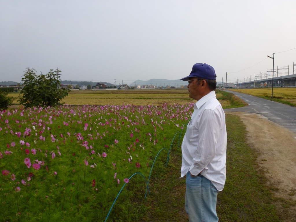 コスモスを植えられた犬飼さん登場