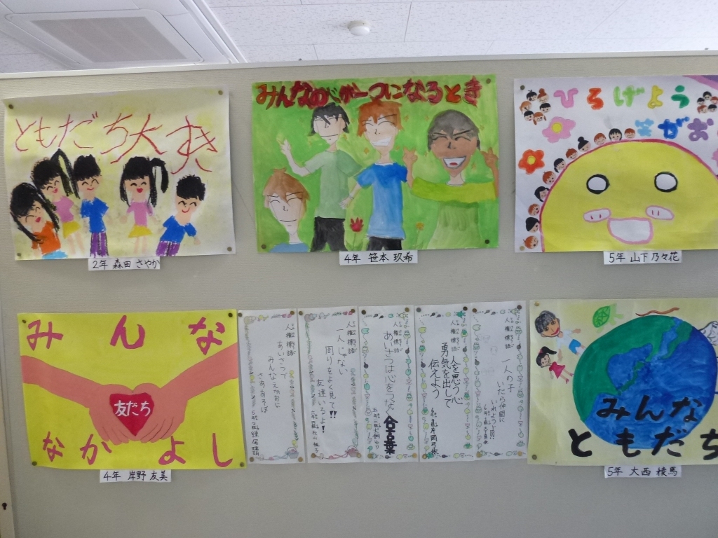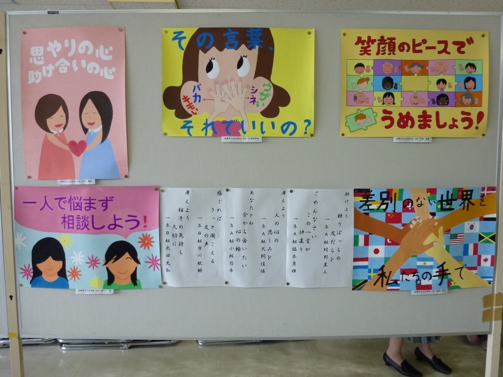 庄小学校・中学校の生徒達の『人権ポスター&標語』が展示されてました