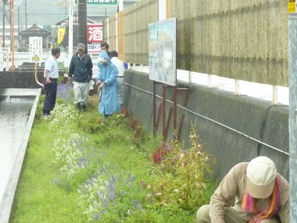 花壇近くにいると、カッパを着た人達が花壇方面に…