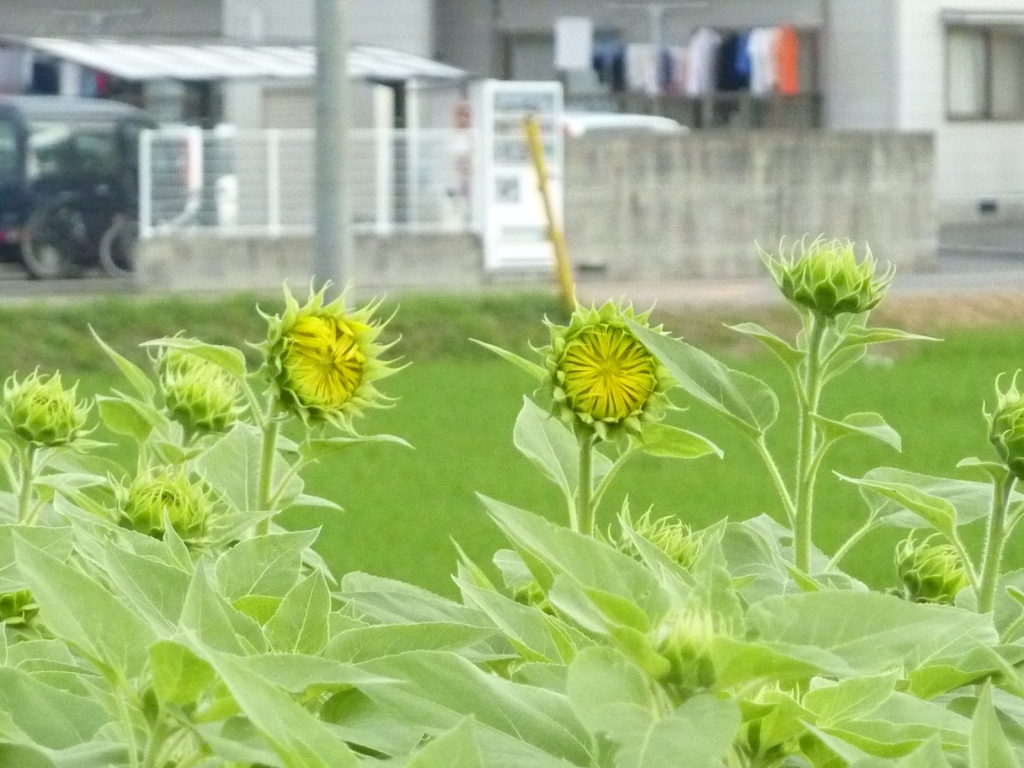 まだまだ花を咲かせてないひまわりも沢山あります