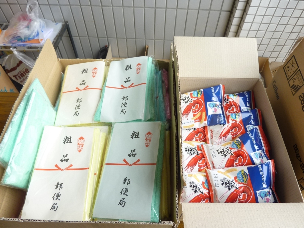 タオルとお菓子を提供して頂けました